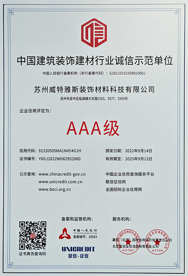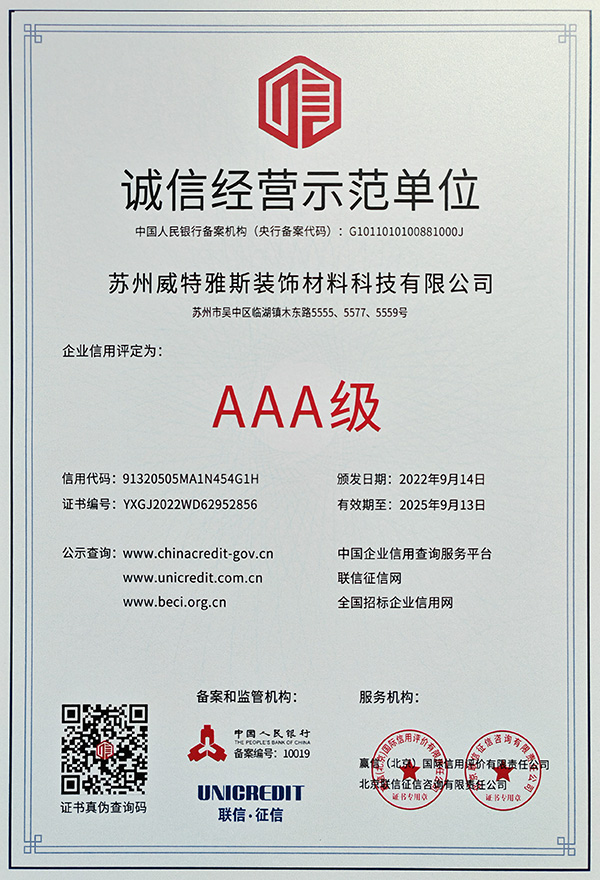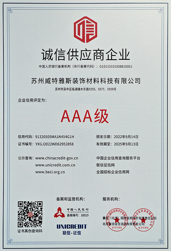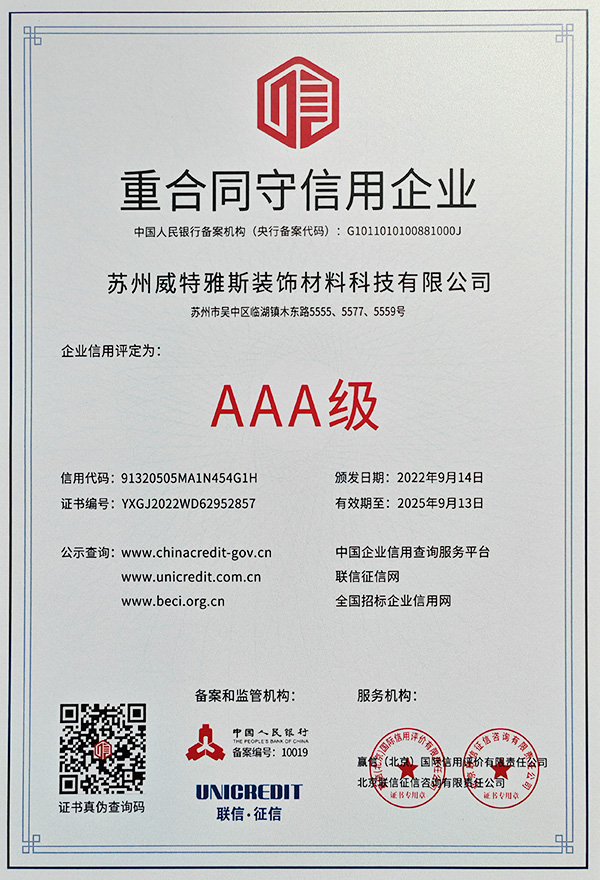 蘇州威特雅斯裝飾材料科技有限公司位于風景秀麗的名城蘇州,從業20年來,在行業內享有良好聲譽。